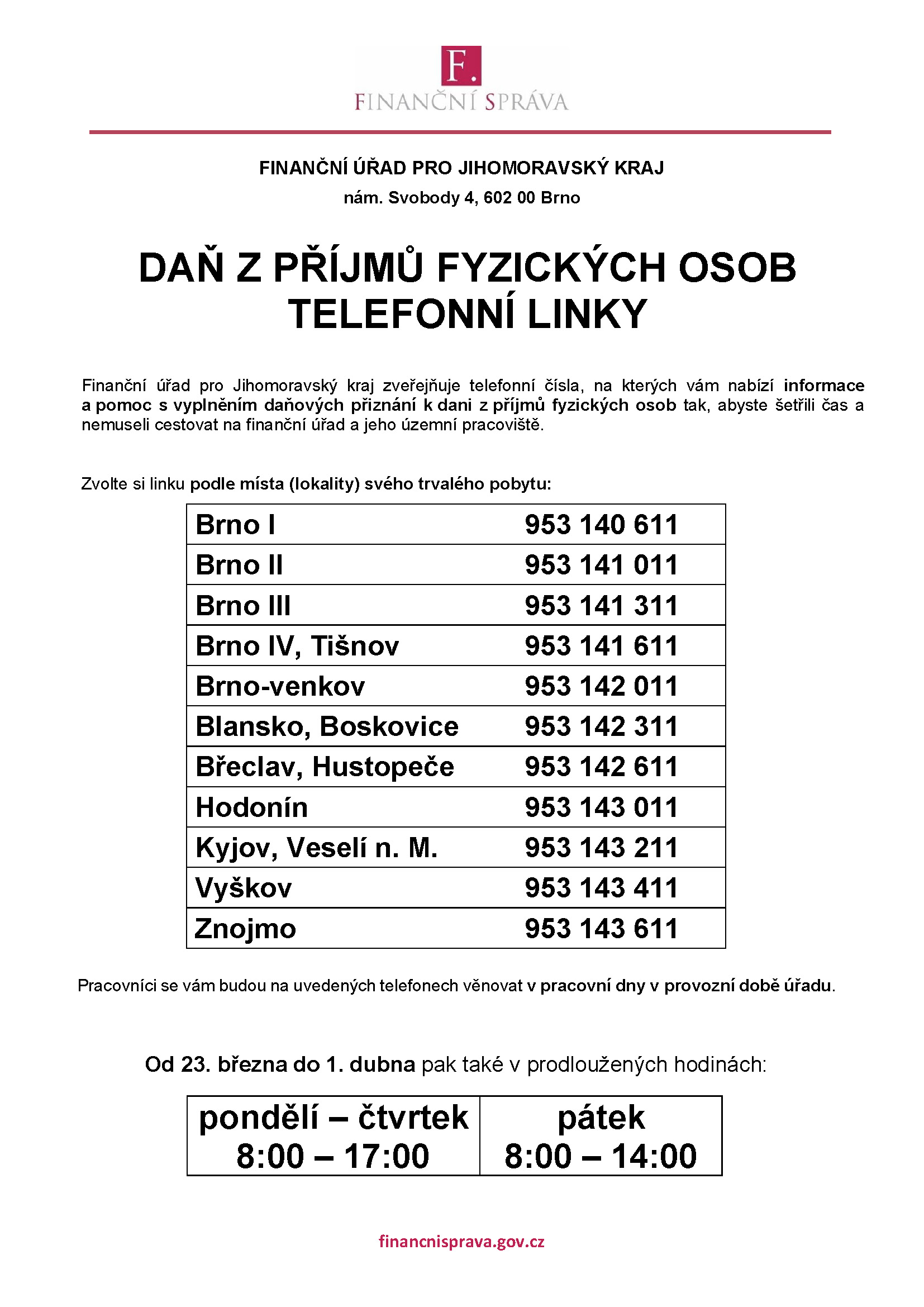 Daň z příjmů - telefonní linky a výjezdy do obcí
