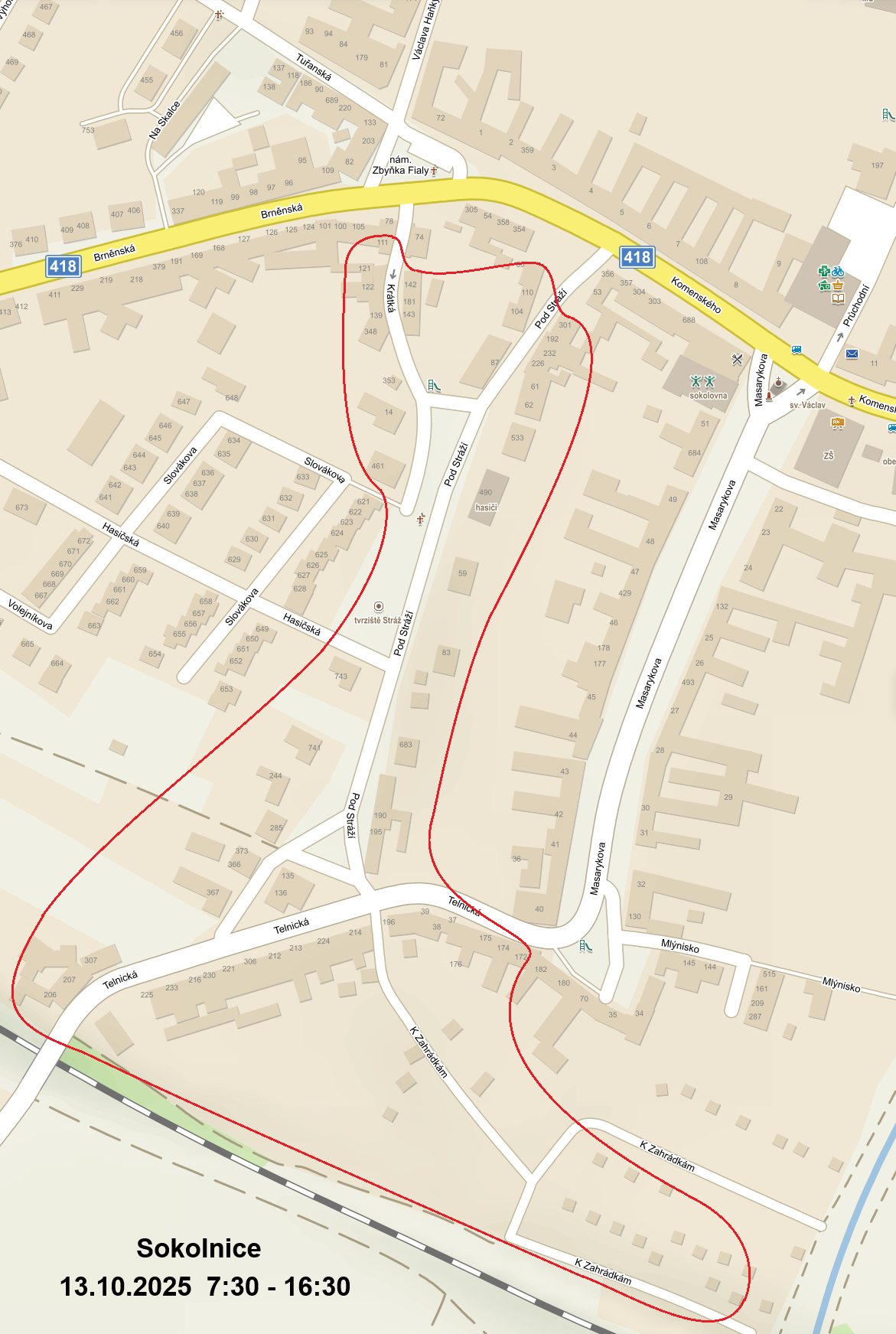 Vypnutá oblast: Telnice nádraží čtvrt - Hliníky, Na Vilách mimo č.p. 430 a 431, - K Nádraží, - garáže za č.p. 322, Sokolnice - Telnická od trati po č.p. 172, - Pod Stráží od Telnické po č.p. 301 a 65, více v příloze