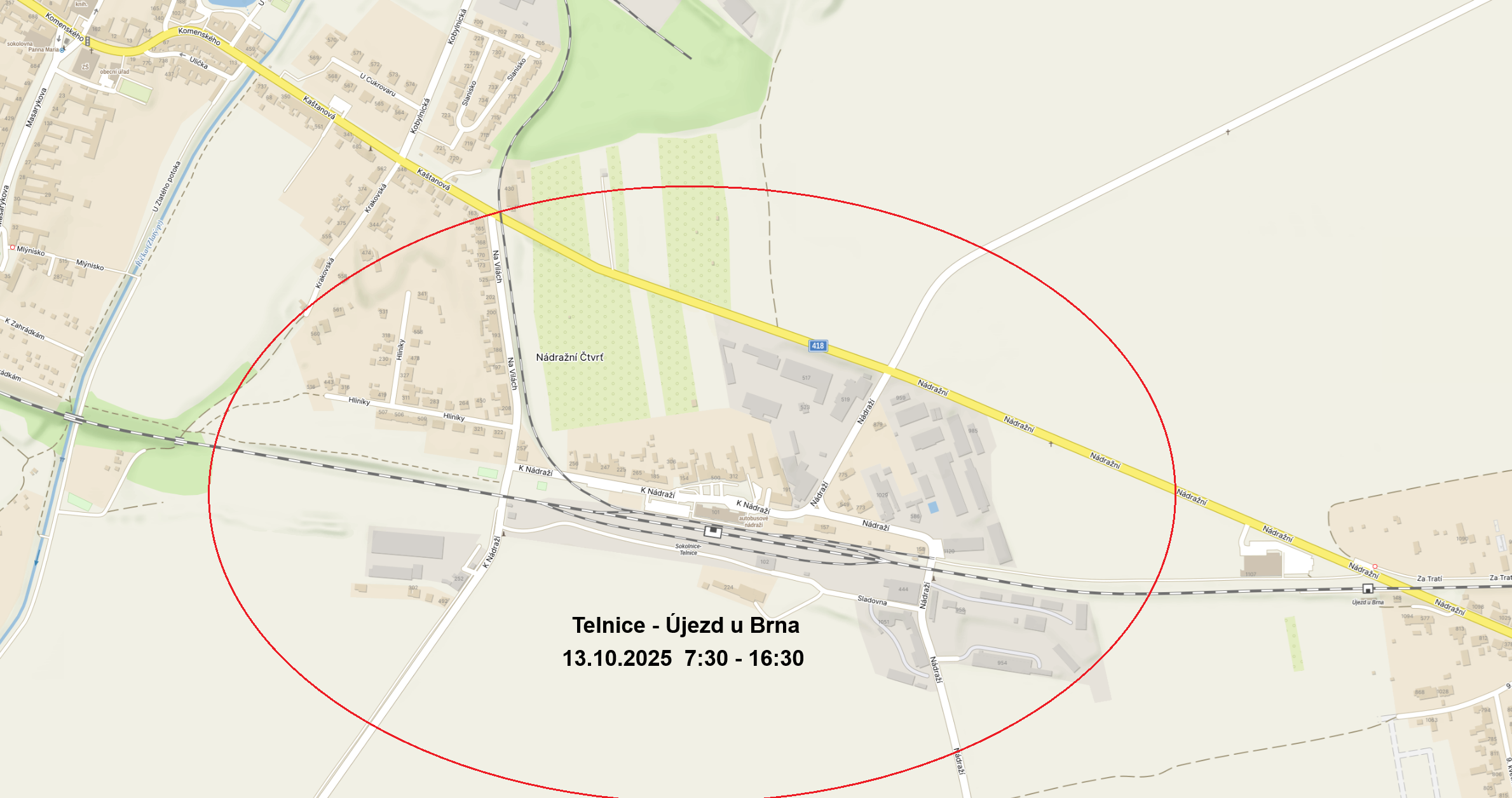 Vypnutá oblast: Telnice nádraží čtvrt - Hliníky, Na Vilách mimo č.p. 430 a 431, - K Nádraží, - garáže za č.p. 322, Sokolnice - Telnická od trati po č.p. 172, - Pod Stráží od Telnické po č.p. 301 a 65, více v příloze