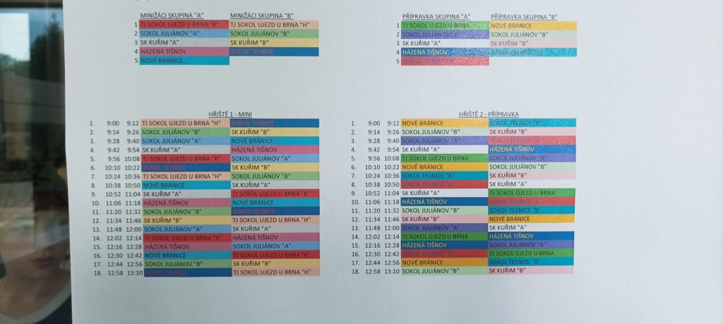 Krásný a zajímavý turnaj v házené mini žáků a přípravek se uskutečnil v neděli 19.5.2024. Již tradičně se nepočítalo skóre, na dvou hřištích se odehrálo 36 zápasů, hrací doba 1×12min. Zúčastnilo se 180 dětí ze šesti oddílů viz. foto. níže, za podpory spousty rodičů a fanoušků.