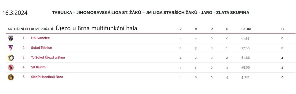 V sobotu 16.03.2024 proběhla mistrovská liga st. žáků v házené.